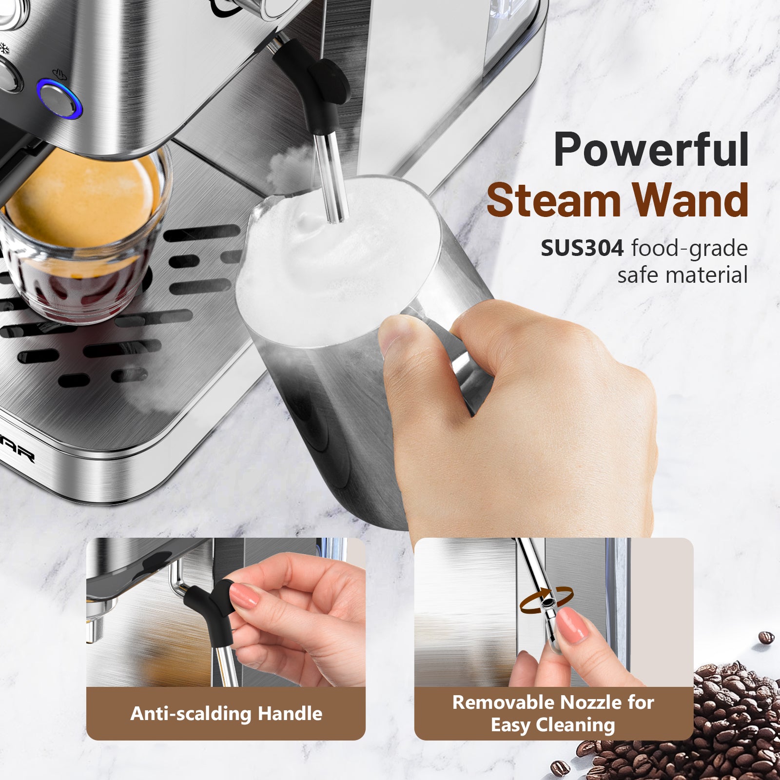 Espresso Machine 20 Bar, Cold Brew Espresso Maker with Milk Frother Steam Wand, Compact Stainless Steel Semi Automatic Espresso Coffee Machine for Cappuccino & Latte & Americano Maker