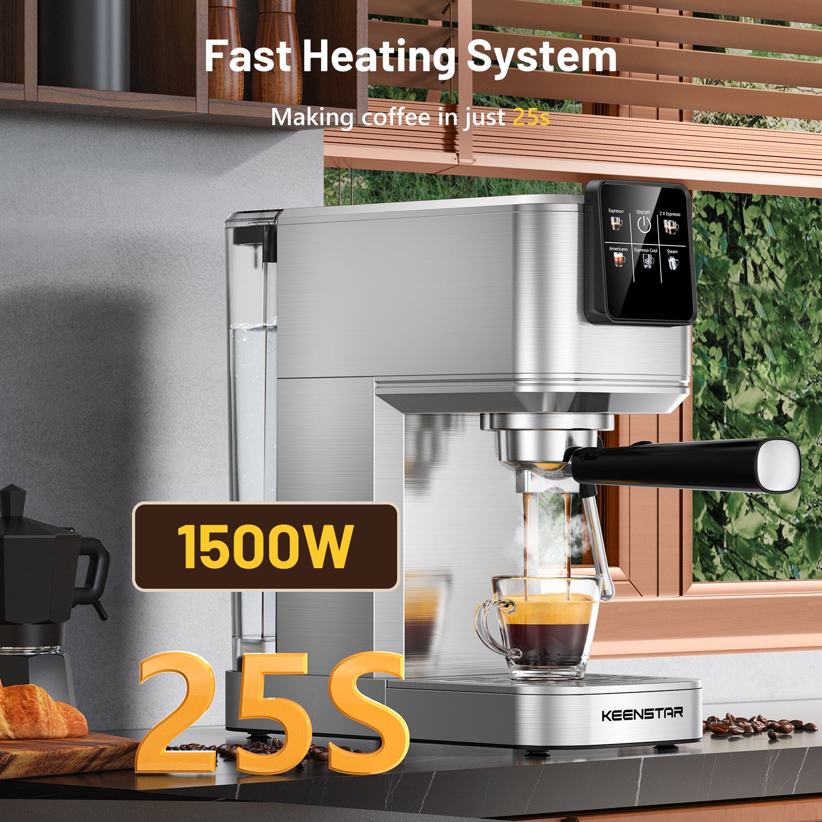 20Bar Espresso Machine with Rapid Cold Brew, Hot & Iced Coffee Makers, Stainless Steel Espresso Maker with Milk Frother Steam Wand, Touch Screen with Water Tank for Latte, Cappuccino, Gift